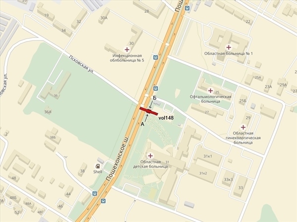 Пошехонское шоссе, район Больничного комплекса, справа при движении к ТРЦ "Мармелад", въезд в город