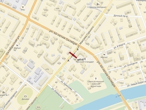 Горького ул., 44, 100м до пересечения с ул. 60-летия Октября, справа при движении от ул.Пионерской