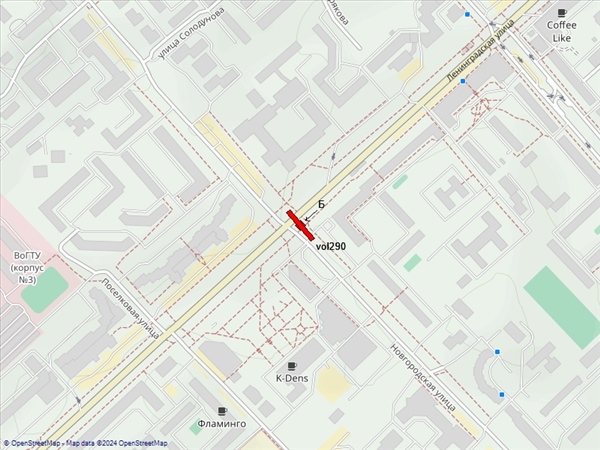 Ленинградская ул., пересечение с ул.Новгородской, напротив д. 2 ("Бургер Кинг)", слева при движении из центра