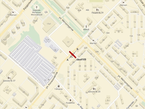 Космонавтов ул., д.20а по ул. Маринченко, в районе ДК "Металлург", 400м до гипермаркета "Европа", справа при движении к ул.Металлургов