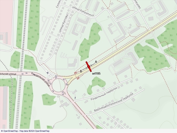 Раздольная ул., перед транспортной развязкой с ул.Михалицына и Силикатной ул., справа при движении в центр (сторона Б - 800м до гиперматкета "МЕТРО")