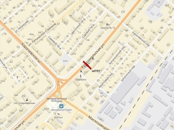 Комсомольская ул., 227, 300м от автовокзала и Карачевского шоссе. справа при движении в центр