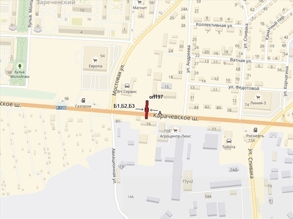 Карачевское шоссе, 86, 200м до гипермаркета "Европа", 100м до поворота на ул.Мостовая и 150м до АЗС"Газпром", справа при движении из города