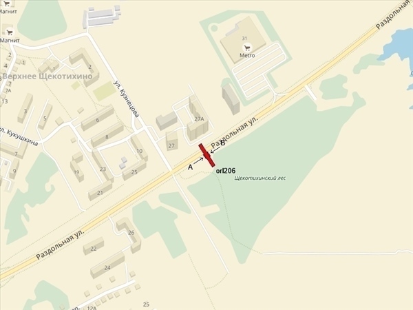 Раздольная ул., напротив д.27а, 200м до гипермаркета "МЕТРО", справа при движении из города